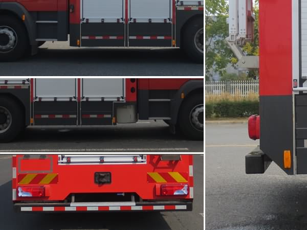 | 罐體總?cè)莘e為4.100立方米,水罐容積:3.550立方米,水罐為異型罐,前端尺寸:1530×1300×1530mm,后端尺寸:520×1300×1000mm,A類泡沫液罐容積:0.210立方米,A類泡沫液罐尺寸:810×510×530mm,B類泡沫液罐容積:0.340立方米,B類泡沫液罐尺寸:810×830×530mm。整體式側(cè)防護(hù)結(jié)構(gòu),后防護(hù)裝置材料:Q235,截面尺寸:120×120mm,與車輛連接方式:螺栓連接,后防護(hù)離地高度:435mm。前伸:485mm。EBS生產(chǎn)企業(yè)為WABCO,型號(hào)為480 020 XXX0。主要專用裝置有壓縮空氣泡沫系統(tǒng)。 | |||