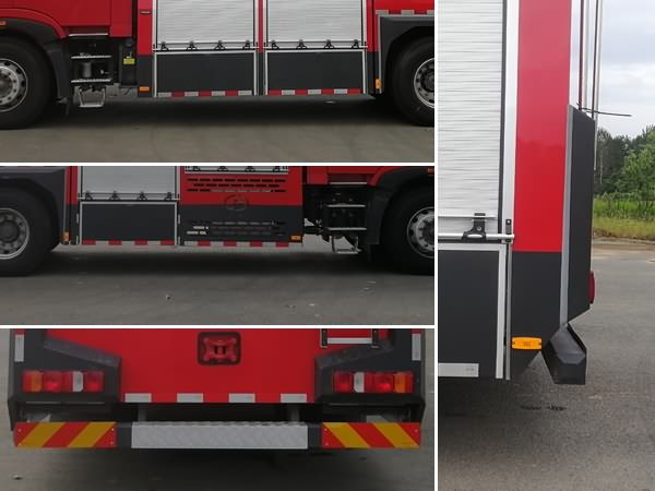 | 罐體總?cè)莘e為6.750立方米,水罐容積:2.700立方米,水罐尺寸:800×2440×1450mm,泡沫液罐容積:2.050立方米,泡沫液罐尺寸:605×2440×1450mm,干粉罐容積:2.0立方米,干粉罐尺寸(直徑×高):1600×1300mm。整體式側(cè)防護(hù)結(jié)構(gòu),后防護(hù)裝置材料:Q235,截面尺寸:120×120mm,與車輛連接方式:螺栓連接,后防護(hù)離地高度:425mm。ABS生產(chǎn)企業(yè)為威伯科(上海)管理有限公司,型號(hào)為4460046300。主要專用裝置有消防泵、消防炮、干粉系統(tǒng)。 | |||