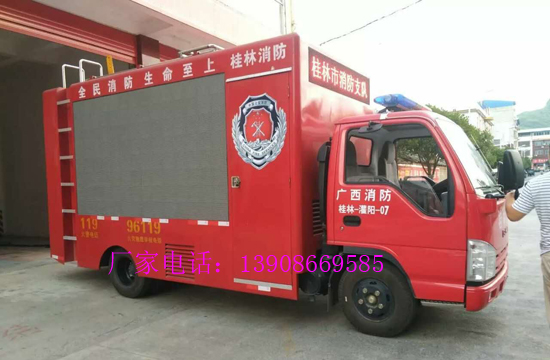 小慶鈴消防宣傳車采用慶鈴QL1040BUHAY底盤改裝,五十鈴4KH1CN6LB發(fā)動機,120馬力,駕駛室可翻轉(zhuǎn),車體側(cè)后方安裝一個廂體門,車體頂部安裝一個廂體門,配合煙霧逃生JH通道使用;車體尾部設(shè)置爬梯,供消防員上下車頂;車體前部設(shè)有抽拉式16千瓦超靜音發(fā)電機組。側(cè)面安裝P5防震防水高清彩色LED顯示屏;車廂內(nèi)安裝**系統(tǒng):臺式電腦,配備不小于 150 瓦放大器及音箱;車廂內(nèi)部安裝煙霧逃生通道演練系統(tǒng),爬梯,上部安裝樓層結(jié)繩逃生體驗功能;另側(cè)面安裝模擬報**訓(xùn)練系統(tǒng)、消防安全標識認知系統(tǒng)、電氣火災(zāi)成因試驗系統(tǒng)、建筑消防**模擬系統(tǒng)、火災(zāi)隱患查找系統(tǒng)。 |