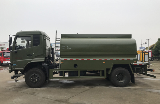 9-10噸越野消防灑水車采用東風(fēng)天錦DFV2163GP6DJ底盤改裝,單排帶臥駕駛室,康明斯B6.2NS6B210發(fā)動(dòng)機(jī),210馬力,國(guó)六排放標(biāo)準(zhǔn),配備CB10/30常壓消防泵,車頂帶消防炮,罐體容積9-10立方米,前沖、后灑;具有自吸自排功能,消防炮噴水可調(diào)節(jié)成柱狀和霧狀,帶消防接頭,自流閥,罐體采用4毫米優(yōu)質(zhì)碳鋼制作,帶4米長(zhǎng)吸水管2根。 |