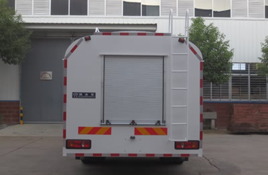 后置泵,泵房左右兩側(cè)、器材箱左右側(cè)均有新款易拉高強(qiáng)度鋁合金卷簾門。 |