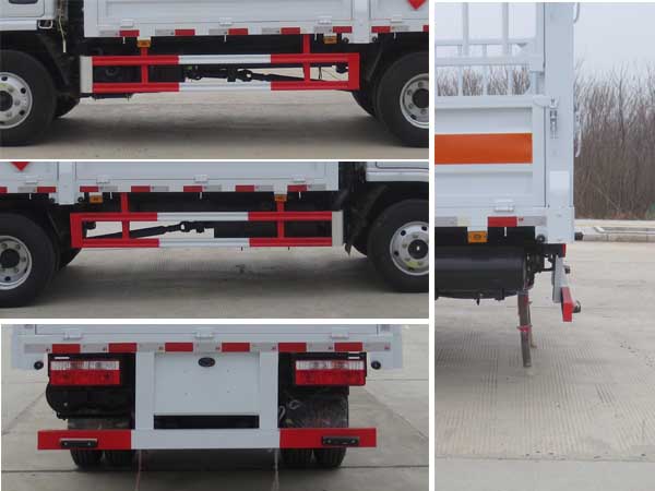 | 隨底盤選裝駕駛室,選裝燃油箱,電瓶,尿素罐,儲氣筒左右安裝位置;選裝廂體外觀,選裝無柵欄;選裝起重尾板(收起狀態(tài)水平長度為280mm),尾板質(zhì)量為350kg,選裝不同廠家尾板及尾板樣式;運輸具有**容器(瓶)包裝的介質(zhì)類項號:2.1,2.2;該車為危險品貨物運輸車;僅采用前輪盤式制動器,前置排氣管,子午線輪胎,限速裝置的底盤,限速80km/h;轉(zhuǎn)向輪安裝爆胎應(yīng)急防護裝置;發(fā)動機CY4BK461,CY4BK161,YCY24140-60,D20TCIF1,D25TCIF1,CA4DB1-11E62,CA4DB1-13E6,CY4BK361,Q23-115E60,Q28-130E60對應(yīng)油耗申報值均為:16.2L/100km;該車安裝具有衛(wèi)星定位功能的行駛記錄儀;ABS廠家及型號:襄陽東風(fēng)隆誠機械有限責(zé)任公司/ABS/ASR-24V-4S/4M;側(cè)面防護及后下部防護裝置材料材質(zhì):Q235,連接方式:焊接加螺栓連接;后下部防護裝置斷面尺寸(寬×高):50×100(mm),離地高度:460mm;選裝圓形后防護,連接方式:焊接加螺栓連接;后下部防護裝置斷面尺寸為:Φ110mm,離地高度:400mm;該車型可選裝ETC車載裝置. | |||