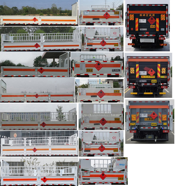 | ABS系統(tǒng)型號:ABS-VI.E;生產(chǎn)企業(yè):廣州瑞立科密汽車電子股份有限公司.ABS系統(tǒng)型號:ABS-E;生產(chǎn)企業(yè):威伯科汽車**系統(tǒng)(**)有限公司;安裝有限速裝置;限速裝置限速(km/h):80;安裝有具有衛(wèi)星定位功能的行駛記錄儀;隨底盤選裝駕駛室;選裝廂體外觀;選裝無柵欄;選裝起重尾板(收起狀態(tài)水平長度為290mm),尾板質(zhì)量為450kg;選裝不同廠家尾板以及尾板外觀;該車型可選裝ETC車載裝置;僅采用發(fā)動機F3.8NS6B156,對應(yīng)油耗申報值(L/100km)為17.9;側(cè)面防護及后下部防護裝置材料材質(zhì):Q235,側(cè)面防護連接方式:焊接連接;后下部防護裝置連接方式:焊接加螺栓連接,斷面尺寸(寬×高):50×100(mm),離地高度:460mm;選裝圓形后防護,斷面尺寸(直徑):Φ110(mm),離地高度:420mm.運輸**容器(瓶)包裝的貨物;危險貨物類項號:2.1,2.2;該車為危險品貨物運輸車;僅采用前輪盤式制動器,前置排氣管,子午線輪胎;轉(zhuǎn)向輪安裝爆胎應(yīng)急防護裝置; | |||