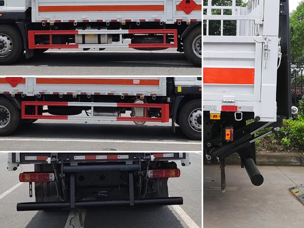 | EBS系統(tǒng)型號:EBS 5;生產(chǎn)企業(yè):克諾爾制動系統(tǒng)(大連)有限公司;安裝有限速裝置;限速裝置限速(km/h):80;安裝有具有衛(wèi)星定位功能的行駛記錄儀;隨底盤選裝尿素罐及油箱左右安裝位置;選裝箱體結(jié)構(gòu)及后部結(jié)構(gòu);僅采用底盤4700,4800,5150mm軸距;選裝不帶起重尾板,尾板質(zhì)量為550kg,起重尾板收起狀態(tài)水平長度為290mm;選裝不同廠家尾板及尾板樣式;該車選裝ETC車載裝置;發(fā)動機(jī)/油耗值(L/100km)對應(yīng)關(guān)系為:F4.5NS6B220/26.28,YCS06245-60A/24.58,YCS04200-68/25.88;側(cè)面防護(hù)及后下部防護(hù)裝置材料材質(zhì):Q235,側(cè)面防護(hù)連接方式:焊接連接;后下部防護(hù)裝置連接方式:焊接加螺栓連接,斷面尺寸(直徑):Φ120mm,離地高度:500mm;選裝不帶尾板時,后下部防護(hù)裝置斷面尺寸(寬×高):60×120(mm),離地高度:470mm;運(yùn)輸**容器(瓶)包裝的貨物;危險貨物類項(xiàng)號:2.1,2.2;該車為危險品貨物運(yùn)輸車;僅采用前輪盤式制動器,前置排氣管,子午線輪胎;后軸為空氣懸架;轉(zhuǎn)向輪安裝爆胎應(yīng)急防護(hù)裝置; | |||