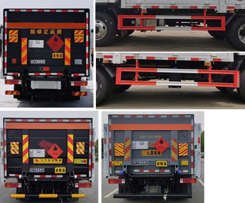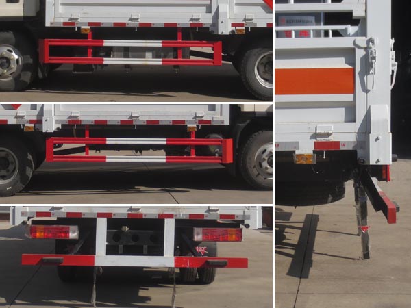 | ABS防抱死制動系統(tǒng)生產(chǎn)廠家/型號:1.廣州瑞立科密汽車電子股份有限公司/CM4XL-4S/4M;2.浙江萬安科技股份有限公司/VIE ABS-II;安裝有限速裝置;限速裝置限速(km/h):80;安裝有具有衛(wèi)星定位功能的行駛記錄儀;隨底盤選裝駕駛室,選裝不同的后部燈具;隨底盤選裝底盤附件、燃油箱左右安裝位置;選裝廂體外觀,選裝無柵欄;選裝起重尾板(收起狀態(tài)水平長度為290mm),尾板質(zhì)量為450kg;選裝不同廠家尾板以及尾板外觀;該車選裝ETC車載裝置;發(fā)動機/油耗值(L/100km)對應(yīng)關(guān)系為:WP2.3NQ120E61/15.3,WP2.3NQ130E61/15.3,CA4DB1-13E6/13.38;側(cè)面防護及后下部防護裝置材料材質(zhì):Q235,側(cè)面防護連接方式:焊接連接;后下部防護裝置連接方式:焊接加螺栓連接,斷面尺寸(寬×高):45×100(mm),離地高度:460mm;選裝圓形后防護,斷面尺寸(直徑):Φ110(mm),離地高度:420mm.運輸**容器(瓶)包裝的貨物;危險貨物類項號:2.1,2.2;該車為危險品貨物運輸車;僅采用前輪盤式制動器,前置排氣管,子午線輪胎;轉(zhuǎn)向輪安裝爆胎應(yīng)急防護裝置; | |||