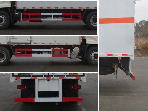 | 廂體頂部封閉,不可開啟;隨底盤選裝駕駛室,選裝后處理隔熱罩;選裝起重尾板(收起狀態(tài)水平長(zhǎng)度為290mm),尾板質(zhì)量為545kg;選裝不同廠家尾板及尾板樣式;廂體側(cè)面選裝開門型式和位置,選裝不帶側(cè)開門,選裝瓦楞板結(jié)構(gòu)及廂體開門型式,選裝后部結(jié)構(gòu);額定載質(zhì)量/整備質(zhì)量(kg)對(duì)應(yīng)關(guān)系為:10600/7205,9995/7810;運(yùn)輸**容器(瓶)包裝的貨物;危險(xiǎn)貨物類項(xiàng)號(hào):3;該車為危險(xiǎn)品貨物運(yùn)輸車;僅采用前輪盤式制動(dòng)器,前置排氣管,子午線輪胎,限速裝置的底盤,限速80km/h;后軸為空氣懸架;轉(zhuǎn)向輪安裝爆胎應(yīng)急防護(hù)裝置;發(fā)動(dòng)機(jī)/油耗申報(bào)值(L/100km)對(duì)應(yīng)關(guān)系為:B6.2NS6B210/25.9,DDi50E190-60/25.9;該車安裝具有衛(wèi)星定位功能的行駛記錄儀;EBS型號(hào)/生產(chǎn)廠家:EBS5/東科克諾爾商用車制動(dòng)系統(tǒng)(十堰)有限公司;側(cè)面防護(hù)及后下部防護(hù)裝置材料材質(zhì):Q235,連接方式:焊接加螺栓連接;后下部防護(hù)裝置斷面尺寸(寬×高):50×120(mm),離地高度:495mm;帶起重尾板時(shí),選裝圓形后防護(hù),后下部防護(hù)裝置斷面尺寸(直徑):Φ120(mm),離地高度:495mm;該車型可選裝ETC車載裝置. | |||