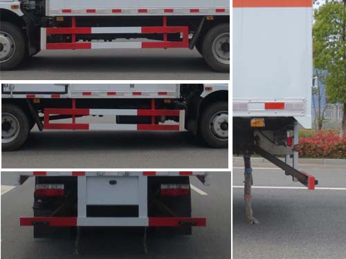 | 廂體頂部封閉,不可開啟;隨底盤選裝駕駛室,選裝輪輞樣式,選裝燃油箱,電瓶,尿素罐,儲(chǔ)氣筒左右安裝位置;廂體選裝瓦楞板結(jié)構(gòu),廂體側(cè)面選裝開門型式及位置或不帶側(cè)開門,選裝百葉窗;選裝起重尾板(收起狀態(tài)水平長度為290mm),尾板質(zhì)量為450kg;選裝不同廠家尾板以及尾板外觀;僅采用底盤3800mm軸距;運(yùn)輸具有**容器(瓶)包裝的介質(zhì)類項(xiàng)號(hào)為3;該車為危險(xiǎn)品貨物運(yùn)輸車;僅采用前輪盤式制動(dòng)器,前置排氣管,子午線輪胎,限速裝置的底盤,限速80km/h;轉(zhuǎn)向輪安裝爆胎應(yīng)急防護(hù)裝置;發(fā)動(dòng)機(jī)YCS04190-68,D25TCIF1,D30TCIF1,D40TCIF1,NV30-C6D,CY4SK261,CY4SK361,YCY30165-60對(duì)應(yīng)油耗申報(bào)值均為:21.3L/100km;該車安裝具有衛(wèi)星定位功能的行駛記錄儀;ABS型號(hào)/廠家:ABS型號(hào):ABS/ASR-24V-4S/4M,廠家:襄陽東風(fēng)隆誠機(jī)械有限責(zé)任公司;側(cè)面防護(hù)及后下部防護(hù)裝置材料材質(zhì):Q235,連接方式:焊接加螺栓連接;后下部防護(hù)裝置斷面尺寸(寬×高):45×100(mm),離地高度:460mm;選裝圓形后防護(hù),連接方式:焊接加螺栓連接;后下部防護(hù)裝置斷面尺寸為:Φ110mm,離地高度:400mm;該車型可選裝ETC車載裝置. | |||