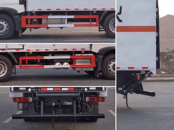 | 車廂頂部封閉不可開啟;裝EBS,EBS系統(tǒng)**器生產(chǎn)企業(yè)/型號為威伯科(上海)管理有限公司/EBS3;安裝有限速裝置;限速裝置限速(km/h):80;安裝有具有衛(wèi)星定位功能的行駛記錄儀;隨底盤選裝駕駛室;僅采用底盤軸距4275+1400mm,4575+1400mm;選裝廂體開門型式及位置;選裝瓦楞板結(jié)構(gòu)廂體;選裝后部雙拉桿結(jié)構(gòu);選裝不帶起重尾板,尾板質(zhì)量為550kg;起重尾板收起狀態(tài)水平長度為290mm;該車選裝ETC車載裝置;發(fā)動機/油耗申報值(L/100km)對應(yīng)關(guān)系為:MC07.27-60、MC07.31-60、MC07.34-60、MC07.29-60、MC07.33-60對應(yīng)36.6,發(fā)動機MC09.35-60、MC09.38-60、MC09.35B-60、MC11.40-60、MC07H.29-60、MC07H.33-60、MC07H.35-60、WP9H350E62、MC11.40-61對應(yīng)34.6;整備質(zhì)量(kg)/額定載質(zhì)量(kg)/準(zhǔn)乘人數(shù)(人)對應(yīng)關(guān)系為:10600/15270/2,10600/15205/3,11000/14870/2,11000/14805/3;側(cè)面防護(hù)及后下部防護(hù)裝置材料材質(zhì):Q235,側(cè)面防護(hù)連接方式:焊接連接;后下部防護(hù)裝置連接方式:焊接加螺栓連接,斷面尺寸(直徑):Φ120mm,離地高度:470mm;選裝不帶尾板時,后下部防護(hù)裝置斷面尺寸(寬×高):60×120(mm),離地高度:470mm;運輸**容器(瓶)包裝的貨物;危險貨物類項號:3;該車為危險品貨物運輸車;僅采用前輪盤式制動器,前置排氣管,子午線輪胎;后軸為空氣懸架;轉(zhuǎn)向輪安裝爆胎應(yīng)急防護(hù)裝置; | |||