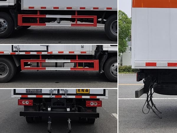 | 廂體頂部封閉,不可開啟;廂體側面選裝開門型式及位置,選裝不帶側開門,選裝瓦楞板結構;選裝起重尾板(收起狀態(tài)水平長度為280mm),尾板質量為350kg;選裝不同廠家尾板以及尾板樣式;運輸**容器(瓶)包裝的介質類項號為:3;該車為危險品貨物運輸車;僅采用前輪盤式制動器,前置排氣管,子午線輪胎,限速裝置的底盤,限速80km/h;轉向輪安裝爆胎應急防護裝置;發(fā)動機與油耗申報值(L/100km)對應關系為F2.8NS6B131/11.5,Q28-130E60/11.5,F2.8NS6B156/11.5,D25TCIF1/11.5;該車安裝具有衛(wèi)星定位功能的行駛記錄儀;ABS系統(tǒng)**器型號/生產企業(yè):ABS-E/威伯科汽車**系統(tǒng)(**)有限公司,ABS-VI·E/廣州瑞立科密汽車電子股份有限公司;YF8/武漢元豐汽車電控系統(tǒng)有限公司;側面防護及后下部防護裝置材料材質:Q235,側防護連接方式:焊接連接;后下部防護裝置連接方式:焊接加螺栓連接,斷面尺寸(寬×高):50×100(mm),離地高度:440mm.選裝起重尾板時,后下部防護裝置,斷面尺寸(直徑):Φ110(mm),離地高度:380mm.該車型可選裝ETC車載裝置. | |||