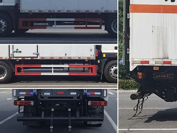 | 車(chē)廂頂部封閉不可開(kāi)啟;EBS系統(tǒng)型號(hào)/生產(chǎn)企業(yè):EBS 5/克諾爾制動(dòng)系統(tǒng)(大連)有限公司;安裝有限速裝置,限速裝置限速(km/h):80;安裝有具有衛(wèi)星定位功能的行駛記錄儀;隨底盤(pán)選裝駕駛室;隨底盤(pán)選裝左右附件及油箱安裝位置;選裝廂體開(kāi)門(mén)型式及位置;選裝瓦楞板結(jié)構(gòu)廂體;選裝后部結(jié)構(gòu);起重尾板為選裝件(收起狀態(tài)水平長(zhǎng)度為290mm),尾板質(zhì)量為550kg;選裝不同廠家尾板以及尾板外觀;該車(chē)選裝ETC車(chē)載裝置;發(fā)動(dòng)機(jī)/油耗申報(bào)值(L/100km)對(duì)應(yīng)關(guān)系為:F4.5NS6B220/24.4,B6.2NS6B210/26.0;側(cè)面防護(hù)及后下部防護(hù)裝置材料材質(zhì):Q235,側(cè)面防護(hù)連接方式:焊接連接;后下部防護(hù)裝置連接方式:焊接加螺栓連接,斷面尺寸(直徑):Φ120(mm),離地高度:480mm;不帶起重尾板時(shí),后防護(hù)連接方式:焊接加螺栓連接;后下部防護(hù)裝置斷面尺寸(寬×高):50×120(mm),離地高度:480mm;運(yùn)輸**容器(瓶)包裝的介質(zhì)類(lèi)項(xiàng)號(hào)為:3;該車(chē)為危險(xiǎn)品貨物運(yùn)輸車(chē);僅采用前輪盤(pán)式制動(dòng)器,前置排氣管,子午線輪胎;轉(zhuǎn)向輪安裝爆胎應(yīng)急防護(hù)裝置;后軸采用空氣懸架. | |||