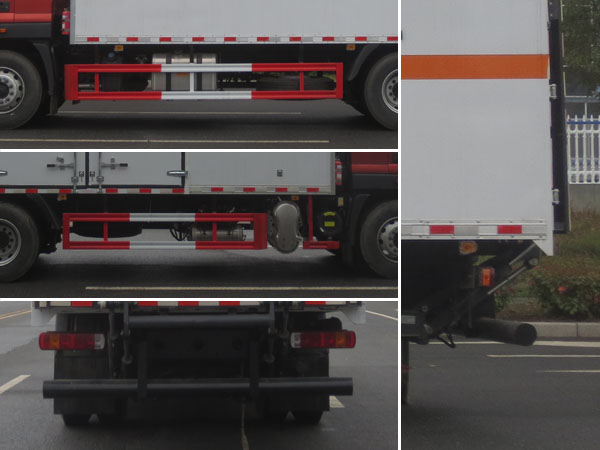 | 車廂頂部封閉不可開(kāi)啟;EBS型號(hào)廠家:EBS 5/克諾爾制動(dòng)系統(tǒng)(大連)有限公司;安裝有限速裝置;限速裝置限速(km/h):80;安裝有具有衛(wèi)星定位功能的行駛記錄儀;廂體側(cè)面選裝開(kāi)門型式和位置;選裝瓦楞板結(jié)構(gòu)廂體及開(kāi)門型式和位置;選裝不帶起重尾板,尾板質(zhì)量為550kg;起重尾板收起狀態(tài)水平長(zhǎng)度為290mm;選裝不同廠家尾板以及尾板外觀;該車選裝ETC車載裝置;發(fā)動(dòng)機(jī)/油耗值(L/100km)對(duì)應(yīng)關(guān)系為:F4.5NS6B220/26.28,YCS06245-60A/24.58,YCS04200-68/25.88;整備質(zhì)量(kg)/額定載質(zhì)量(kg)/準(zhǔn)乘人數(shù)(人)對(duì)應(yīng)關(guān)系為:6800/11070/2,6800/11005/3,7150/10720/2,7150/10655/3;側(cè)面防護(hù)及后下部防護(hù)裝置材料材質(zhì):Q235,側(cè)面防護(hù)連接方式:焊接連接;后下部防護(hù)裝置連接方式:焊接加螺栓連接,斷面尺寸(直徑):Φ140mm,離地高度:485mm;選裝不帶尾板時(shí),后下部防護(hù)裝置斷面尺寸(寬×高):60×120(mm),離地高度:485mm;運(yùn)輸**容器(瓶)包裝的貨物;危險(xiǎn)貨物類項(xiàng)號(hào):9;該車為危險(xiǎn)品貨物運(yùn)輸車;僅采用前輪盤式制動(dòng)器,前置排氣管,子午線輪胎;后軸為空氣懸架;轉(zhuǎn)向輪安裝爆胎應(yīng)急防護(hù)裝置; | |||