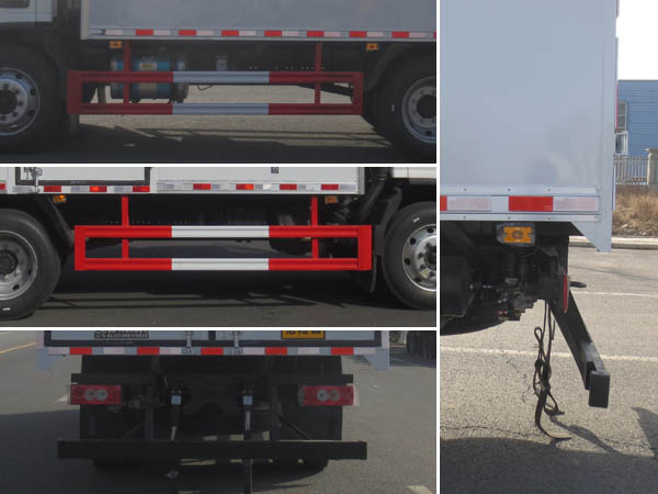 | 車廂頂部封閉不可開啟;ABS系統(tǒng)**器型號/生產企業(yè):ABS-E/威伯科汽車**系統(tǒng)(**)有限公司,ABS-VI·E/廣州瑞立科密汽車電子股份有限公司;安裝有限速裝置;限速裝置限速(km/h):80;安裝有具有衛(wèi)星定位功能的行駛記錄儀;選裝廂體開門型式及位置;選裝瓦楞板結構廂體;選裝起重尾板(收起狀態(tài)水平長度為290mm),尾板質量為450kg;該車選裝ETC車載裝置;發(fā)動機/油耗申報值(L/100km)對應關系為:F3.8NS6B156/21.0,D30TCIF1/21.0;側面防護及后下部防護裝置材料材質:Q235,側面防護連接方式:焊接連接;后下部防護裝置連接方式:焊接加螺栓連接,斷面尺寸(寬×高):50×100(mm),離地高度:440mm;選裝起重尾板時,后防護連接方式:焊接加螺栓連接;后下部防護裝置斷面尺寸為:Φ120mm,離地高度:440mm;運輸**容器(瓶)包裝的貨物;危險貨物類項號:2.1,2.2;該車為危險品貨物運輸車;僅采用前輪盤式制動器,前置排氣管,子午線輪胎;轉向輪安裝爆胎應急防護裝置; | |||