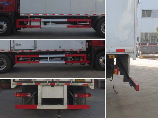 | EBS生產(chǎn)廠家/型號(hào):克諾爾制動(dòng)系統(tǒng)(大連)有限公司/EBS 5;安裝有限速裝置;限速裝置限速(km/h):80;安裝有具有衛(wèi)星定位功能的行駛記錄儀;選裝描述:隨底盤選裝駕駛室;隨底盤選裝電瓶、尿素罐、儲(chǔ)氣筒、油箱、后處理安裝位置;廂體側(cè)面選裝開門型式和位置;選裝瓦楞板結(jié)構(gòu)廂體及開門型式和位置;選裝后部結(jié)構(gòu);該車選裝ETC車載裝置;選裝起重尾板(收起狀態(tài)水平長度為290mm),尾板質(zhì)量為550kg;發(fā)動(dòng)機(jī)/油耗值(L/100km)對應(yīng)關(guān)系為:CA6DLD-22E6/26.53;所用材料材質(zhì)、連接方式以及后部防護(hù)裝置的主要尺寸參數(shù)(斷面尺寸和離地高度):側(cè)面防護(hù)及后下部防護(hù)裝置材料材質(zhì):Q235,連接方式:焊接加螺栓連接;后下部防護(hù)裝置斷面尺寸(寬×高):50×120(mm),離地高度:450mm;選裝圓形后防護(hù),斷面尺寸(直徑):Φ120(mm),離地高度:450mm.車廂頂部封閉且不可開啟;運(yùn)輸**容器(瓶)包裝的貨物;危險(xiǎn)貨物類項(xiàng)號(hào):2.1,2.2;其他說明:該車為危險(xiǎn)品貨物運(yùn)輸車;僅采用前輪盤式制動(dòng)器,前置排氣管,子午線輪胎;后軸為空氣懸架;轉(zhuǎn)向輪安裝爆胎應(yīng)急防護(hù)裝置; | |||