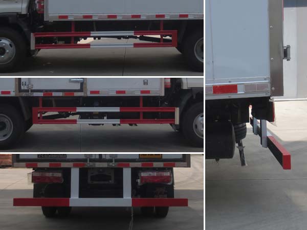 | 廂體頂部封閉,不可開啟;隨底盤選裝尾燈樣式;廂體側(cè)面選裝開門型式及位置,選裝不帶側(cè)開門,選裝瓦楞板結(jié)構(gòu);選裝起重尾板(收起狀態(tài)水平長度為280mm),尾板質(zhì)量為350kg;運(yùn)輸介質(zhì)類項(xiàng)號為:2.1,2.2;該車為危險(xiǎn)品貨物運(yùn)輸車;僅采用前輪盤式制動(dòng)器,前置排氣管,子午線輪胎,限速裝置的底盤,限速80km/h;轉(zhuǎn)向輪安裝爆胎應(yīng)急防護(hù)裝置;發(fā)動(dòng)機(jī)WP2.3NQ130E61對應(yīng)油耗申報(bào)值為11.3L/100km;該車安裝具有衛(wèi)星定位功能的行駛記錄儀ABS型號/廠家為:CM4XL-4S/4M /廣州瑞立科密汽車電子股份有限公司,ABS型號/廠家:VIE ABS-Ⅱ/浙江萬安科技股份有限公司;側(cè)面防護(hù)及后下部防護(hù)裝置材料材質(zhì):Q235,連接方式:焊接加螺栓連接;后下部防護(hù)裝置斷面尺寸(寬×高):50×100(mm),離地高度:450mm;裝起重尾板時(shí),選裝圓形后防護(hù),斷面尺寸(直徑):Φ110(mm),離地高度:400mm;該車可選裝ETC車載裝置. | |||