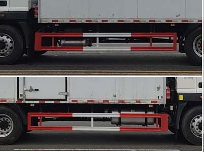 | 車廂頂部封閉不可開啟;EBS型號(hào)廠家:EBS 5/克諾爾制動(dòng)系統(tǒng)(大連)有限公司;安裝有限速裝置;限速裝置限速(km/h):80;安裝有具有衛(wèi)星定位功能的行駛記錄儀;隨底盤選裝左右附件及油箱安裝位置;選裝廂體開門型式及位置;選裝瓦楞板結(jié)構(gòu)廂體;選裝后部結(jié)構(gòu);選裝不帶起重尾板,尾板質(zhì)量為550kg;起重尾板收起狀態(tài)水平長(zhǎng)度為290mm;選裝不同廠家尾板及尾板樣式;該車選裝ETC車載裝置;發(fā)動(dòng)機(jī)/油耗值(L/100km)對(duì)應(yīng)關(guān)系為:F4.5NS6B220/26.8,YCS06245-60A/26.8,YCS04200-68/26.8;整備質(zhì)量(kg)/額定載質(zhì)量(kg)/準(zhǔn)乘人數(shù)(人)對(duì)應(yīng)關(guān)系為:6800/11070/2,6800/11005/3,7150/10720/2,7150/10655/3;側(cè)面防護(hù)及后下部防護(hù)裝置材料材質(zhì):Q235,側(cè)面防護(hù)連接方式:焊接連接;后下部防護(hù)裝置連接方式:焊接加螺栓連接,斷面尺寸(直徑):Φ140mm,離地高度:475mm;選裝不帶尾板時(shí),后下部防護(hù)裝置斷面尺寸(寬×高):60×120(mm),離地高度:475mm;運(yùn)輸**容器(瓶)包裝的貨物;危險(xiǎn)貨物類項(xiàng)號(hào):2.1,2.2;該車為危險(xiǎn)品貨物運(yùn)輸車;僅采用前輪盤式制動(dòng)器,前置排氣管,子午線輪胎;后軸為空氣懸架;轉(zhuǎn)向輪安裝爆胎應(yīng)急防護(hù)裝置; | |||