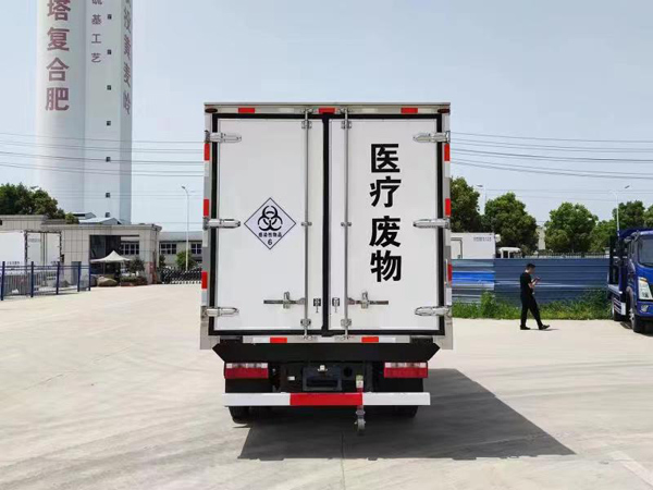 隨底盤選裝駕駛室,選裝右側廂體前部開門,選裝多種型號功率相當?shù)闹评錂C組,廂體頂部封閉,不可開啟。運輸品名:感染性物質(zhì),類項號:6.2,防護材料:Q23**碳鋼,連接方式:左右側面及后下部防護均采用焊接連接,后部防護斷面尺寸(mm):100×50,后部防護離地高度(mm):410。該車安裝帶有衛(wèi)星定位功能的行駛記錄儀。僅采用前盤制動器和安裝ABS以及前置消聲器的底盤.轉向輪安裝爆胎應急防護裝置.采用子午線輪胎。安裝限速裝置,限速80km/h。ABS廠家及型號:1.廣州瑞立科密汽車電子股份有限公司/CM4XL-4S/4M;2.浙江萬安科技股份有限公司/VIE ABS-II。發(fā)動機型號對應油耗申報值(L/100km):WP2.3NQ130E61/11.41.選裝ETC車載裝置;選裝防護樣式,洗手水箱及污水箱 | |||