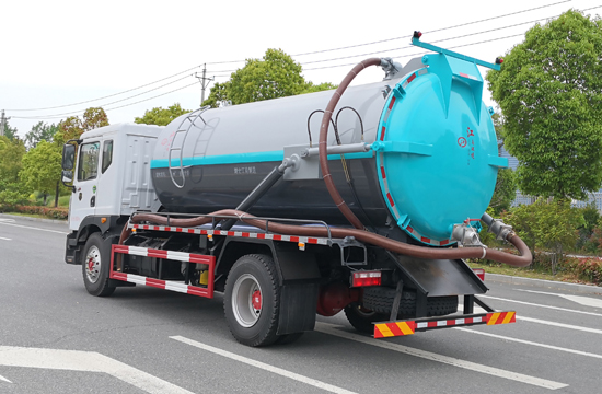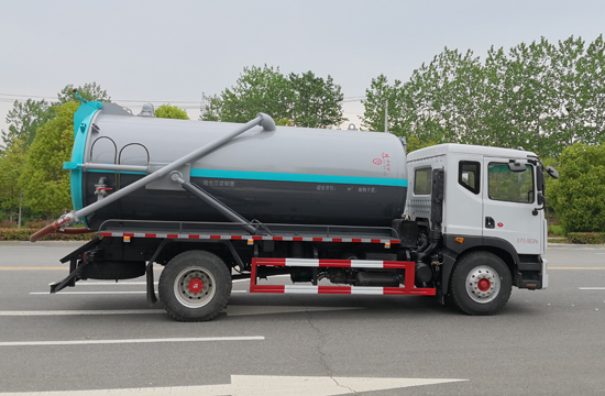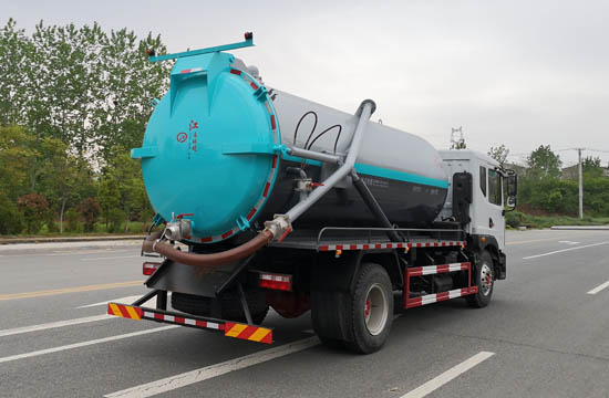 國六12噸吸污車采用東風EQ1185LJ9CDE底盤改裝,平頭單排可翻轉駕駛室,玉柴YCS04200-68發(fā)動機,200馬力,國六排放標準,罐體有效容積12-14立方米。 |