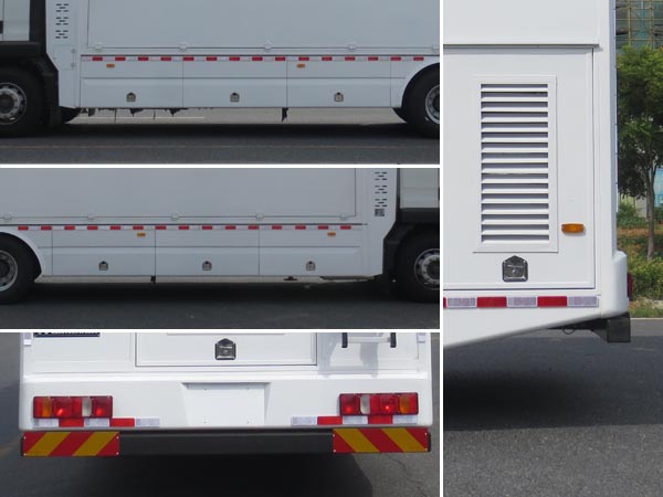| 廂體頂部封閉,不可開啟。隨底盤選裝限速裝置,限速89km/h;僅采用底盤5600mm、5800mm、6300mm軸距。裝備有洗脫機,烘干機等設(shè)備,用于野外被服洗滌作業(yè)。側(cè)防護(hù)裝置為整體式結(jié)構(gòu);后下部防護(hù)裝置材料材質(zhì):Q235,連接方式:螺栓連接;后下部防護(hù)裝置斷面尺寸(寬×高):120×120(mm),離地高度:450mm;ABS系統(tǒng)**器生產(chǎn)企業(yè)/型號為采埃孚商用車系統(tǒng)(青島)有限公司/4460046300。 | |||